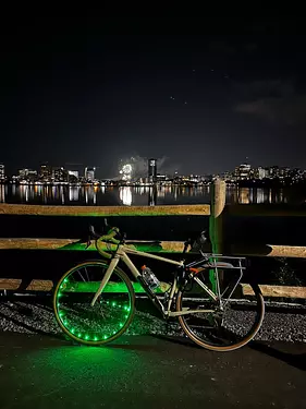I knew the new bridge would be a great place to see the fireworks. I added a lil bling to my bike and headed there.